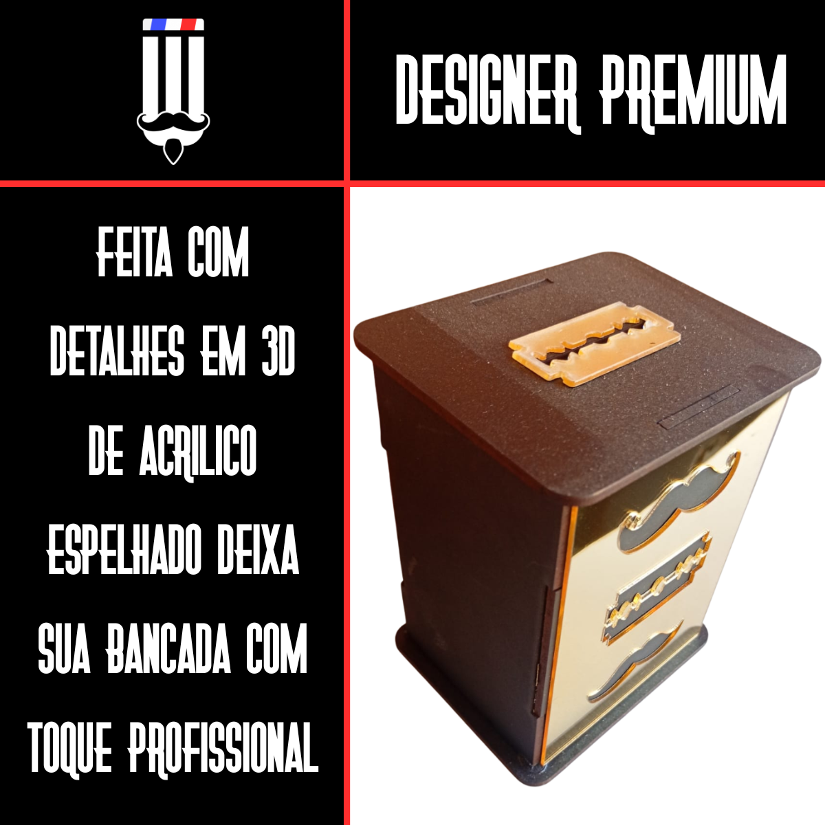 Caixa Descarte de Lâminas em MDF Espelhado DriWorks — Seguro e Profissional (Dourado, Prata, Bronze)