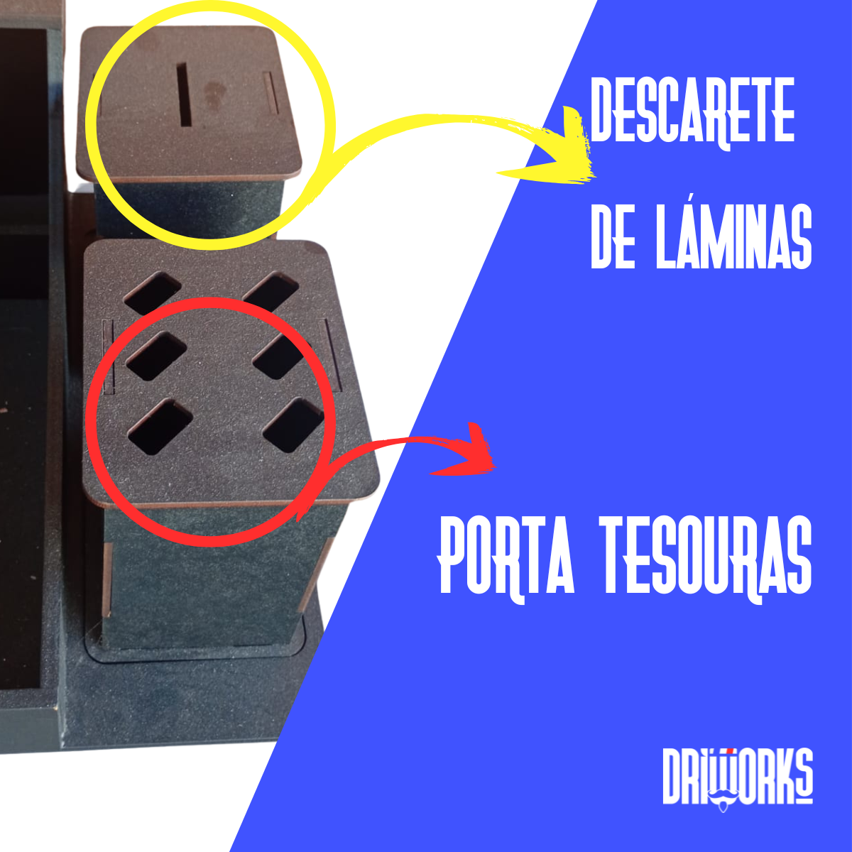 Caixa Kit Profissional em MDF DRIWORKS — Suporte para 5 Máquinas, Tesouras e Descarte de Lâminas